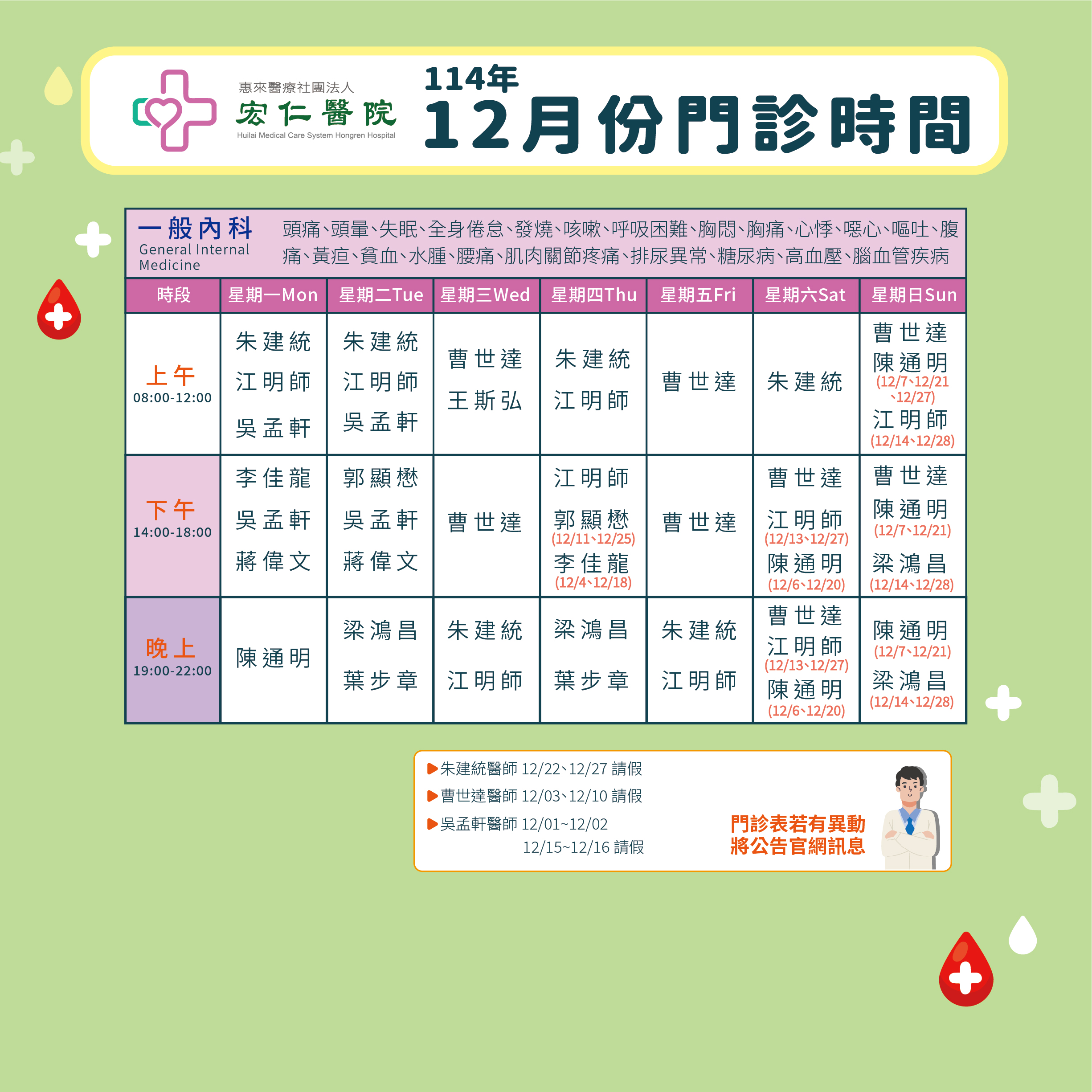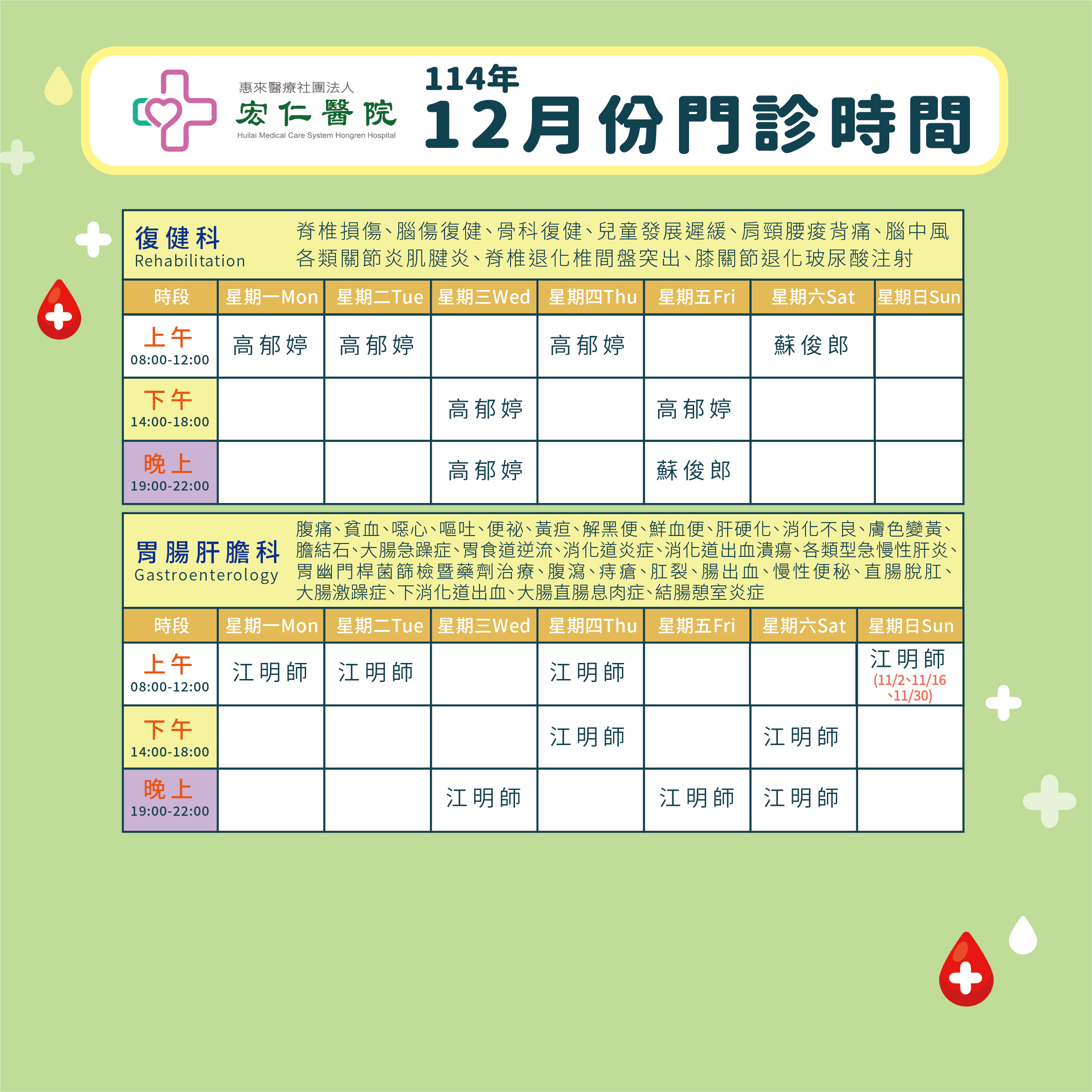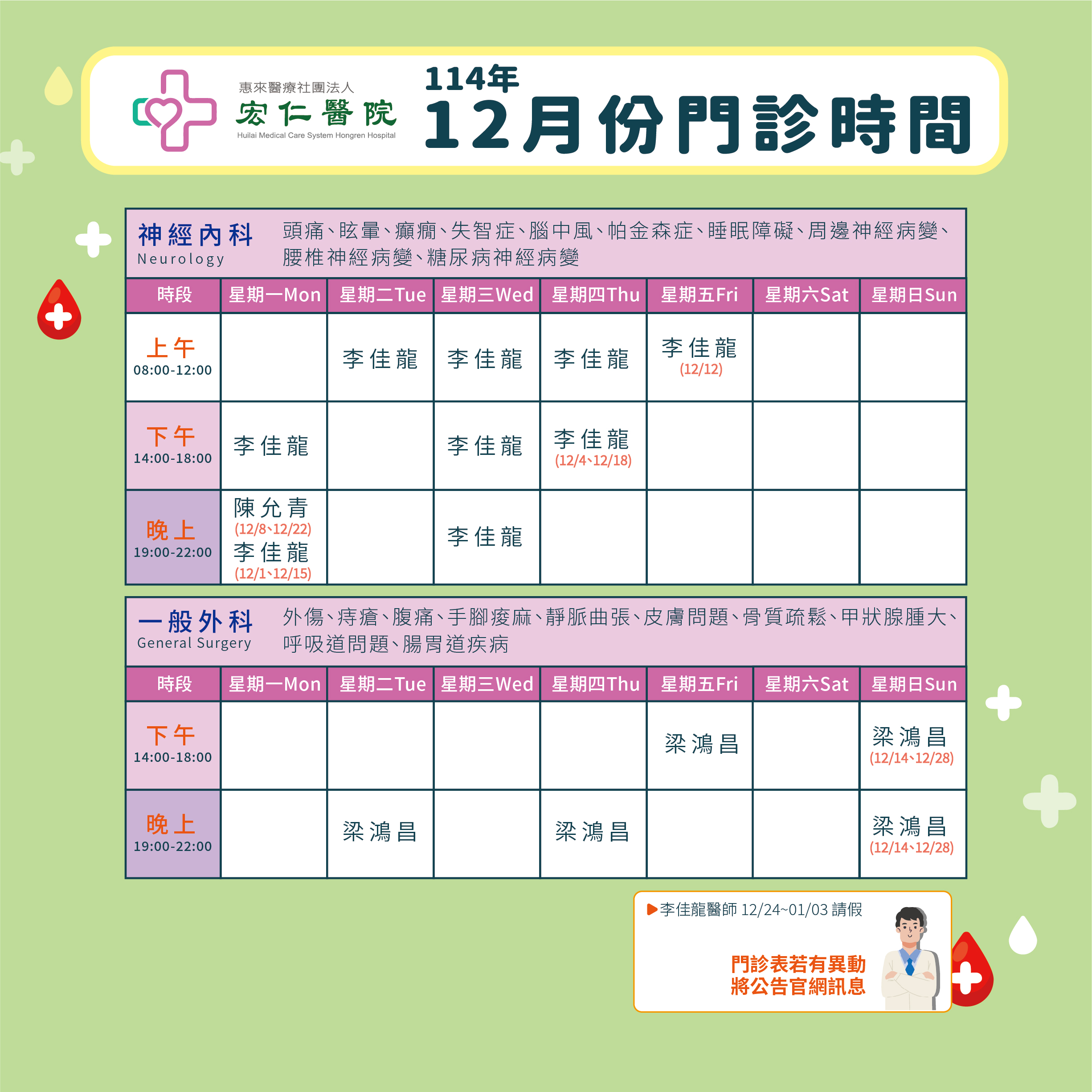 2025年12月門診表
