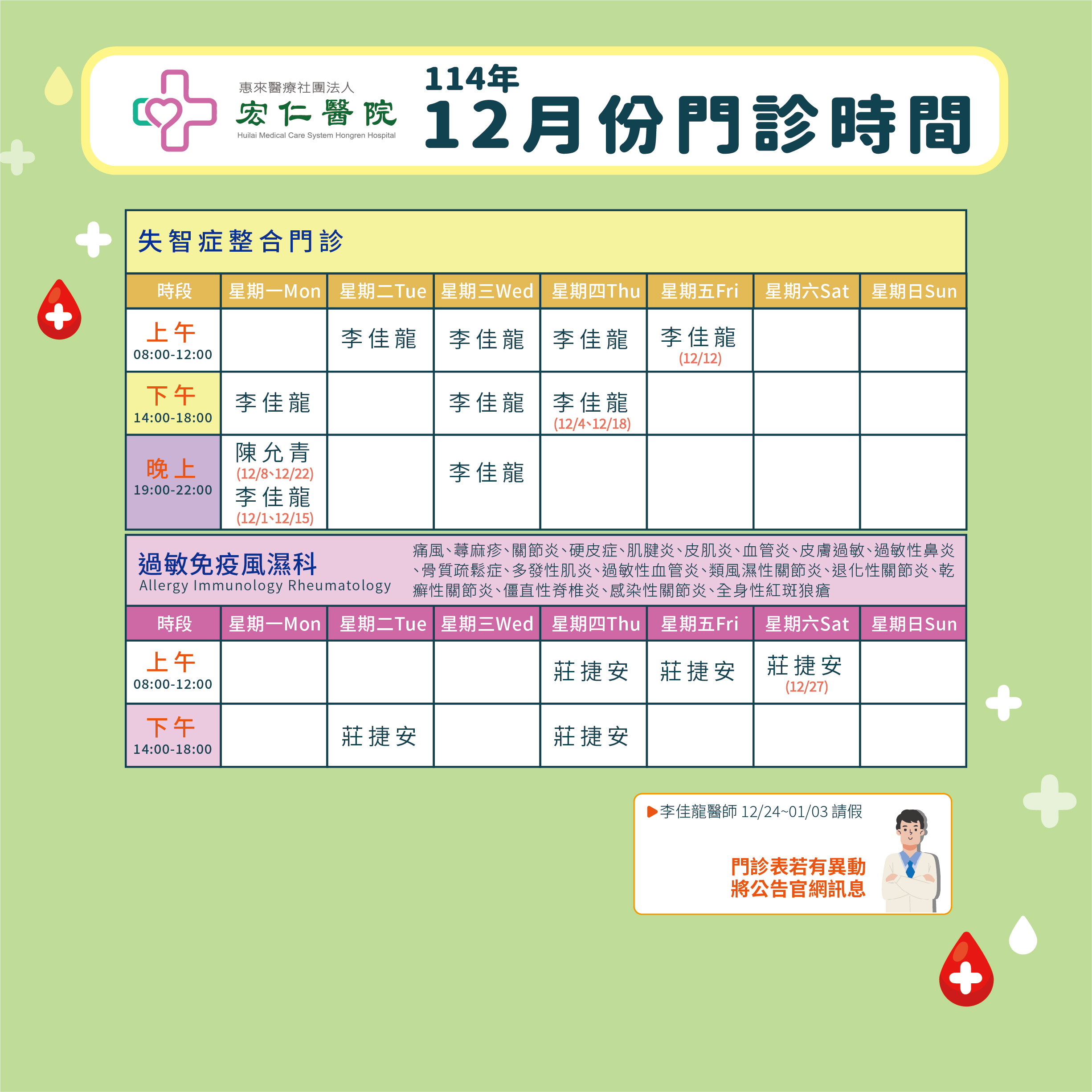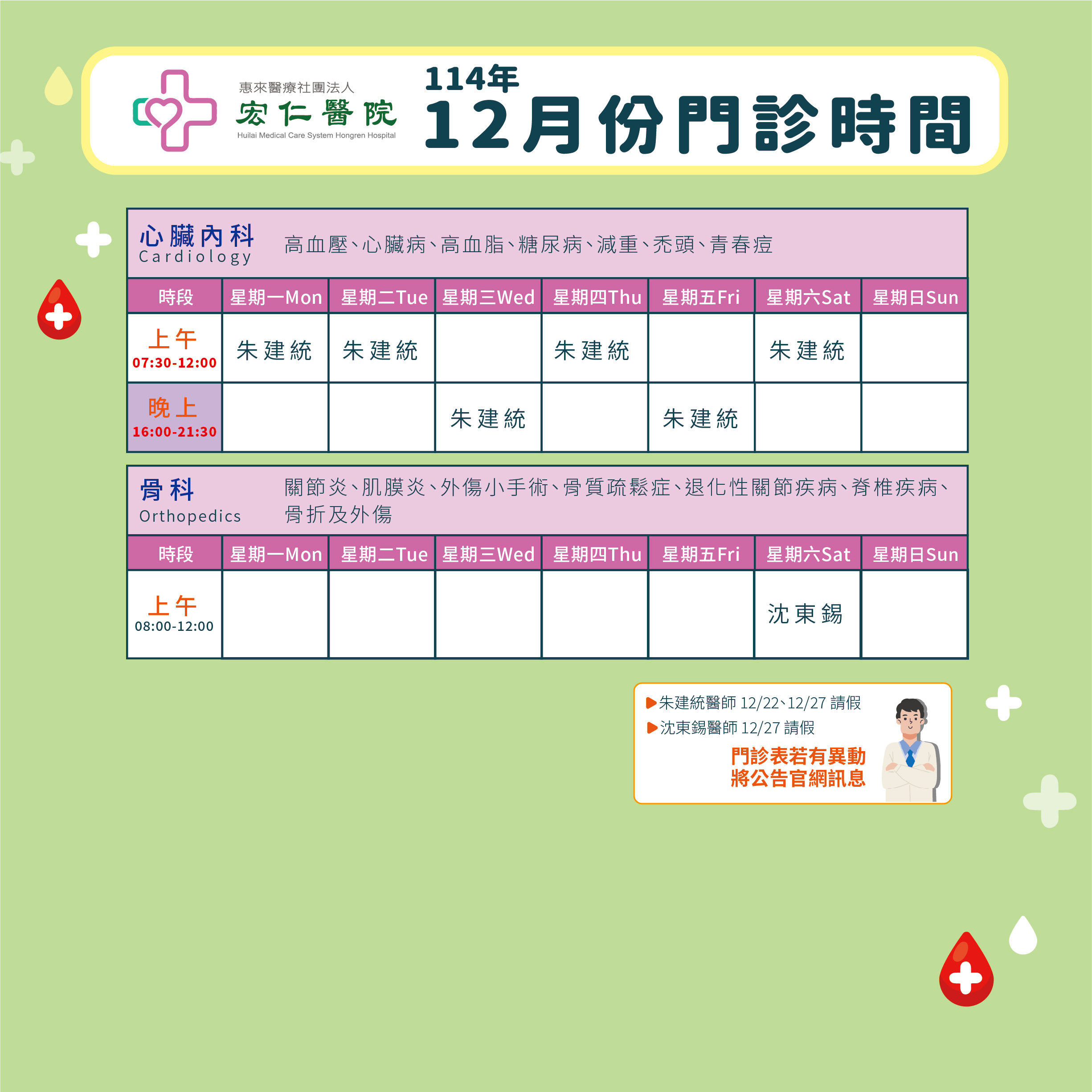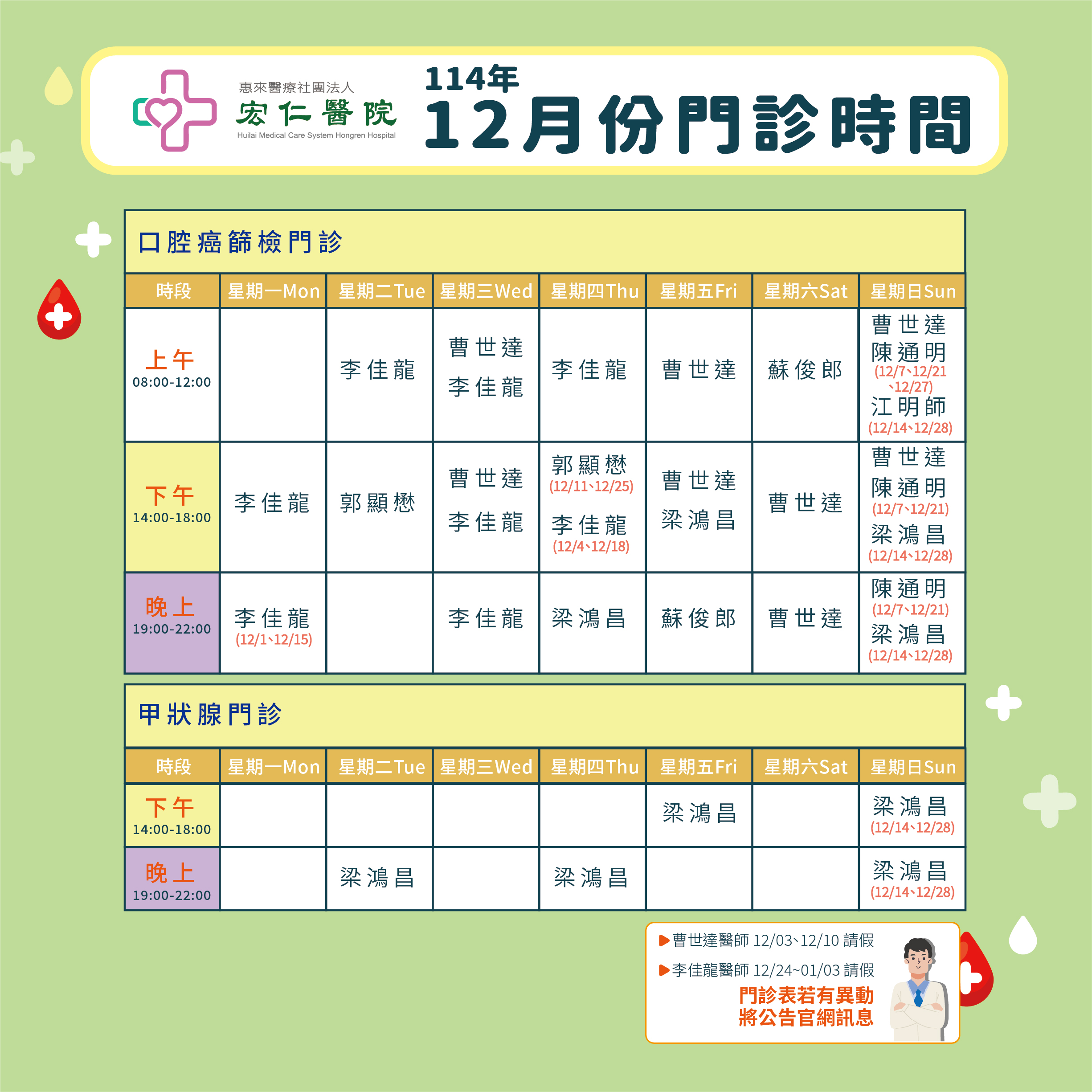 2025年12月門診表
