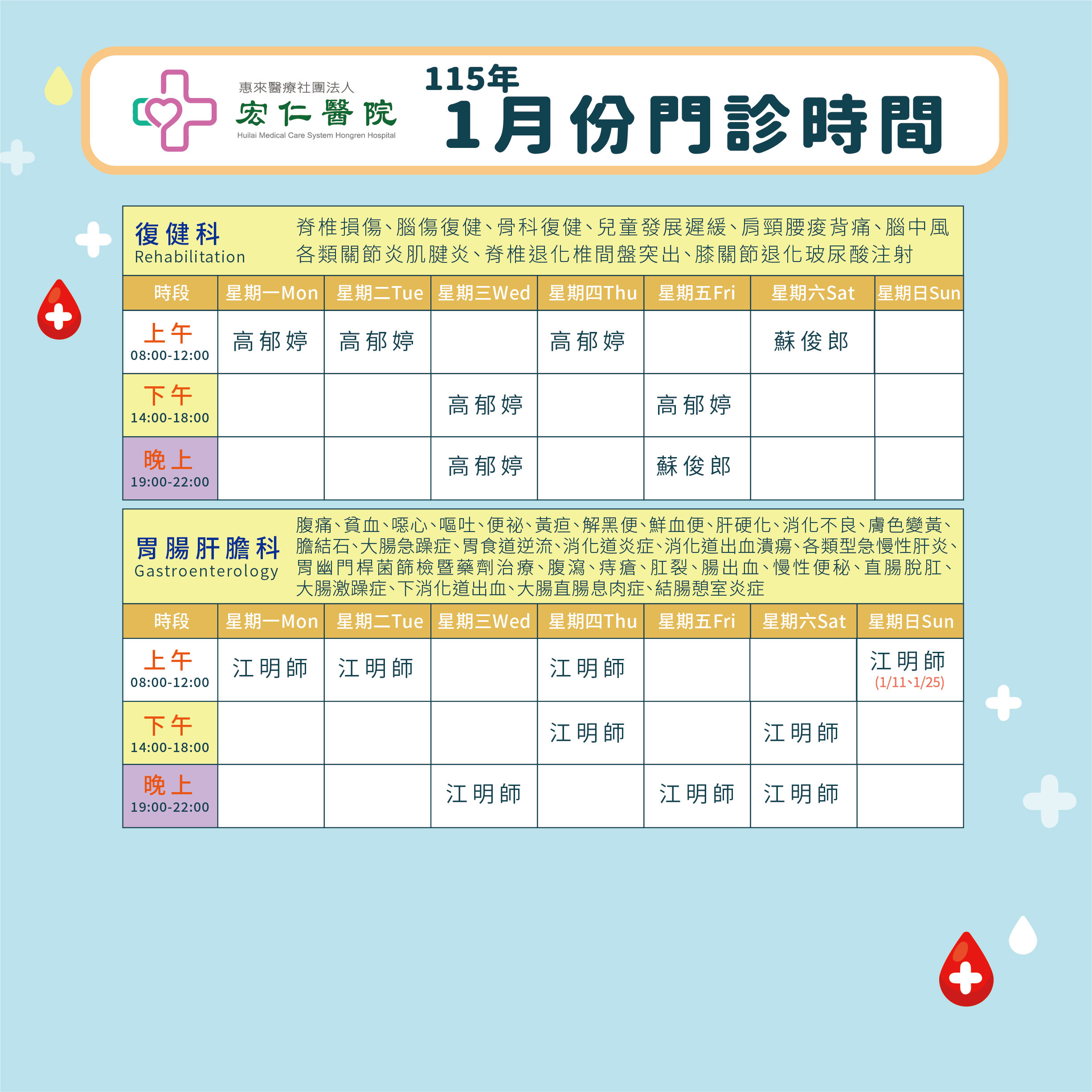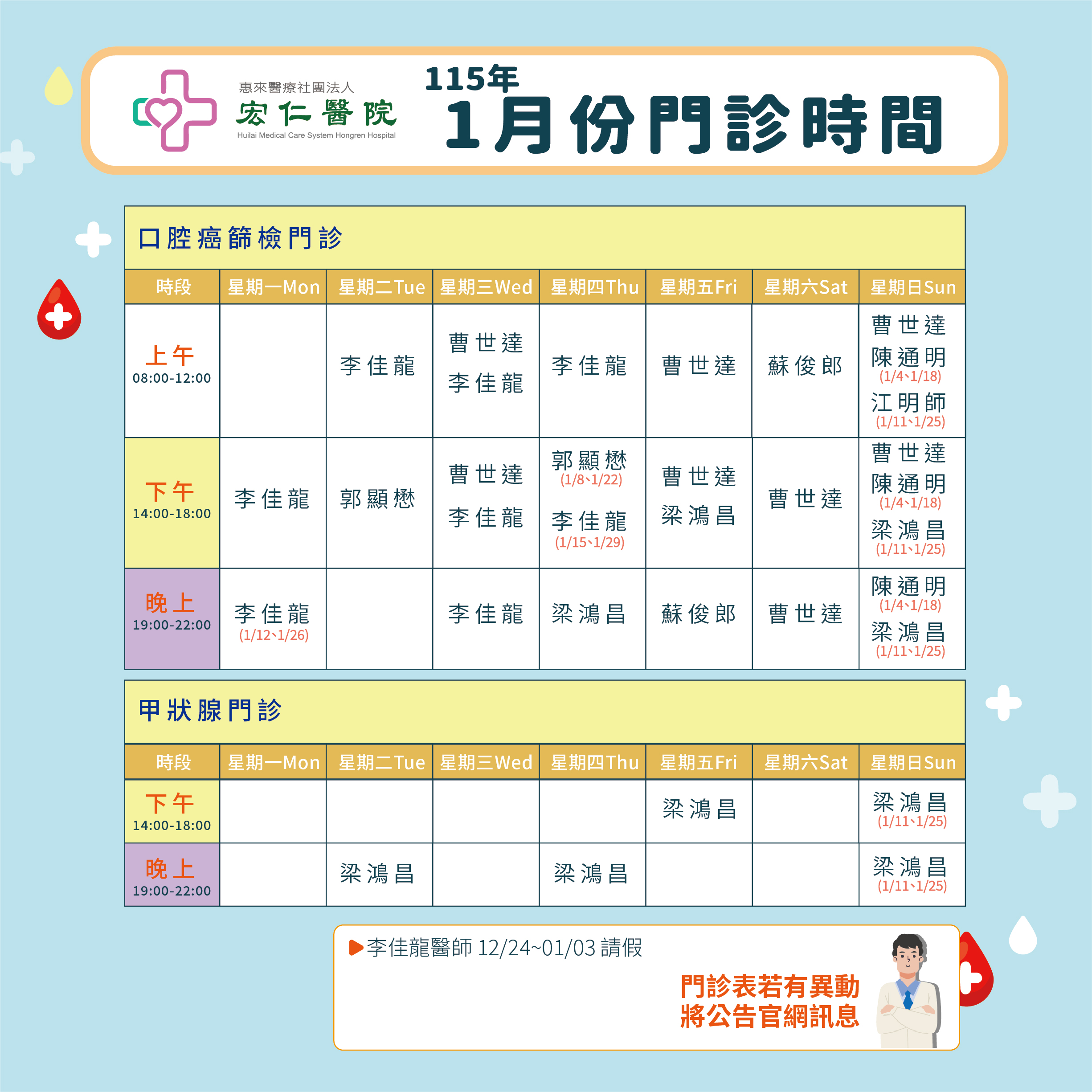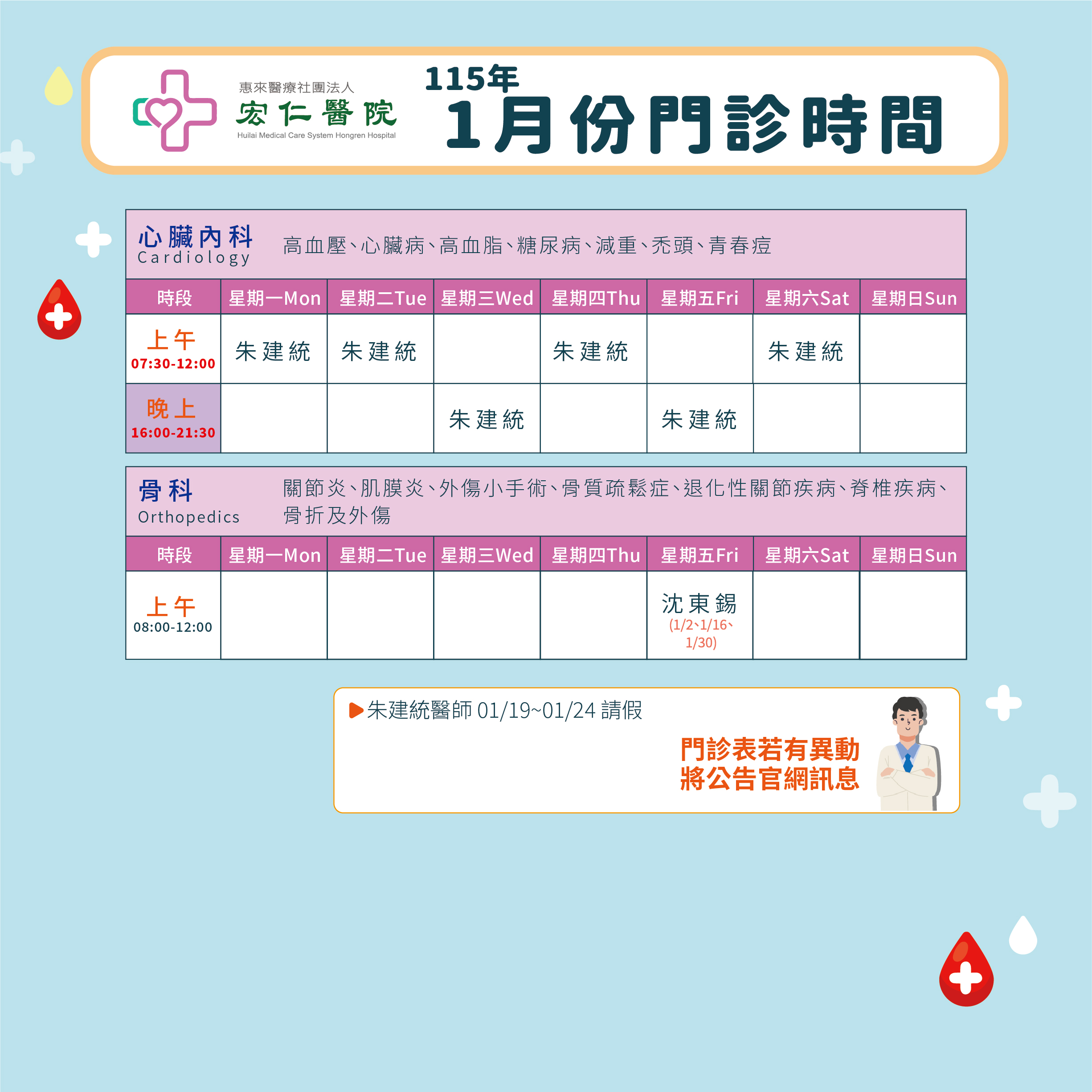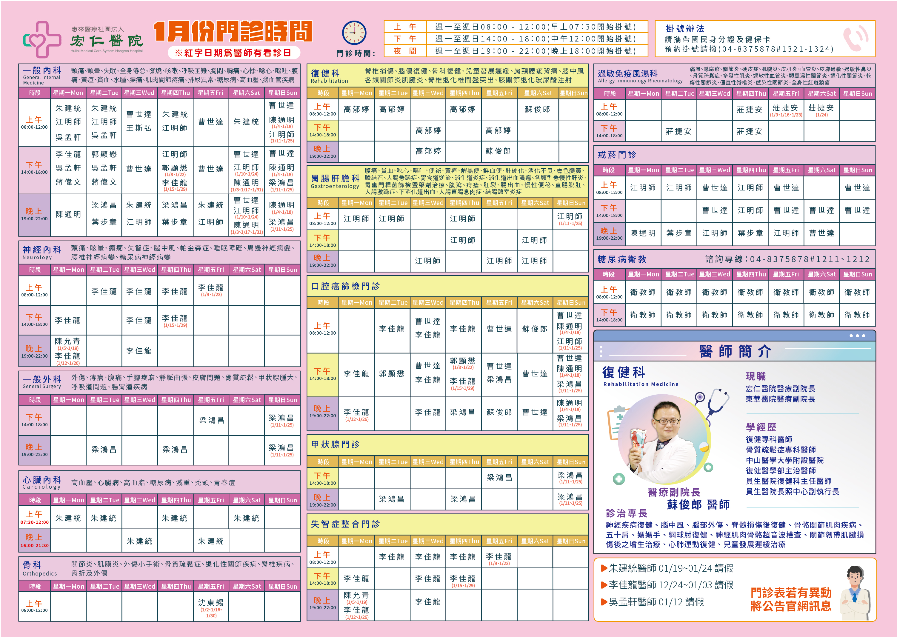 2026年1月門診表