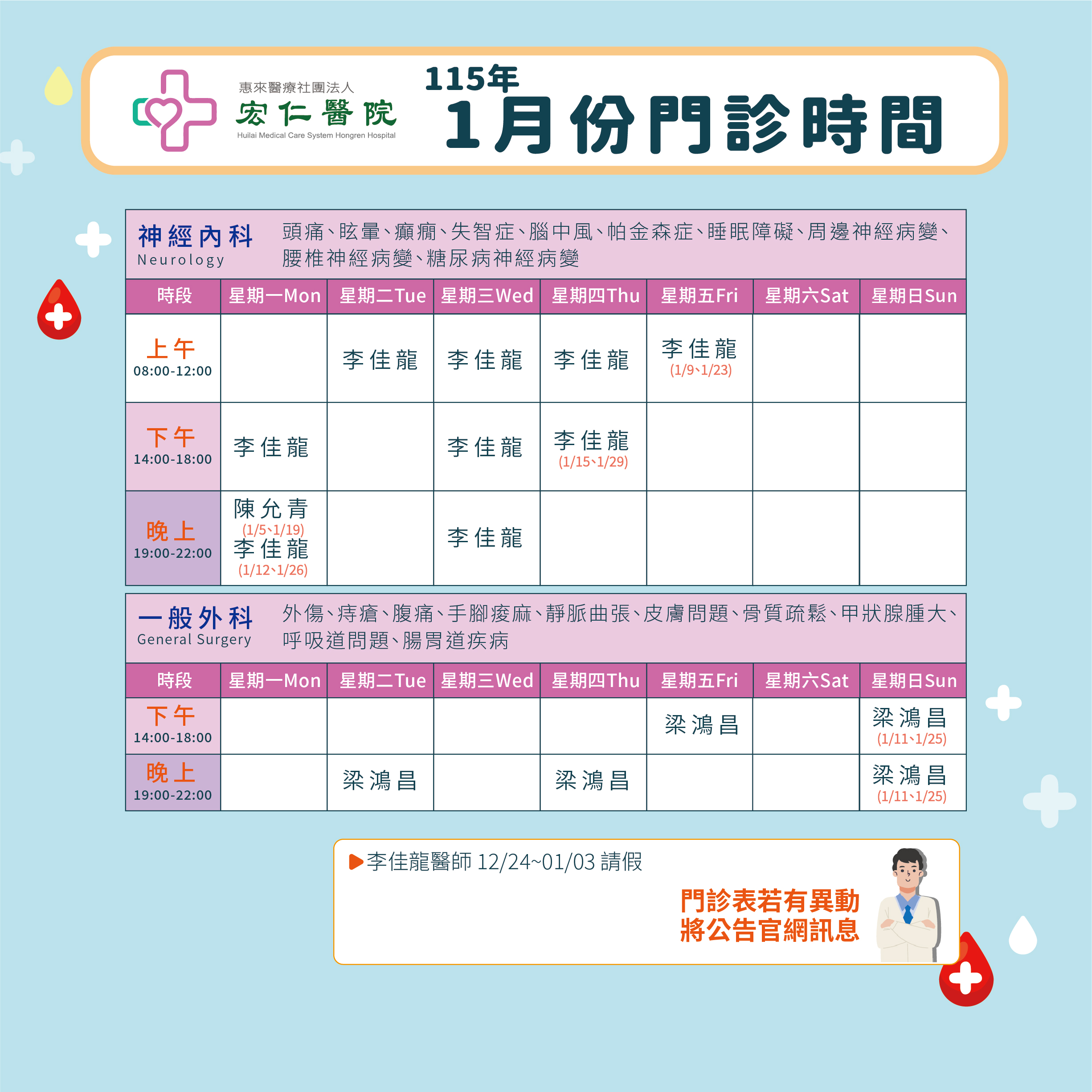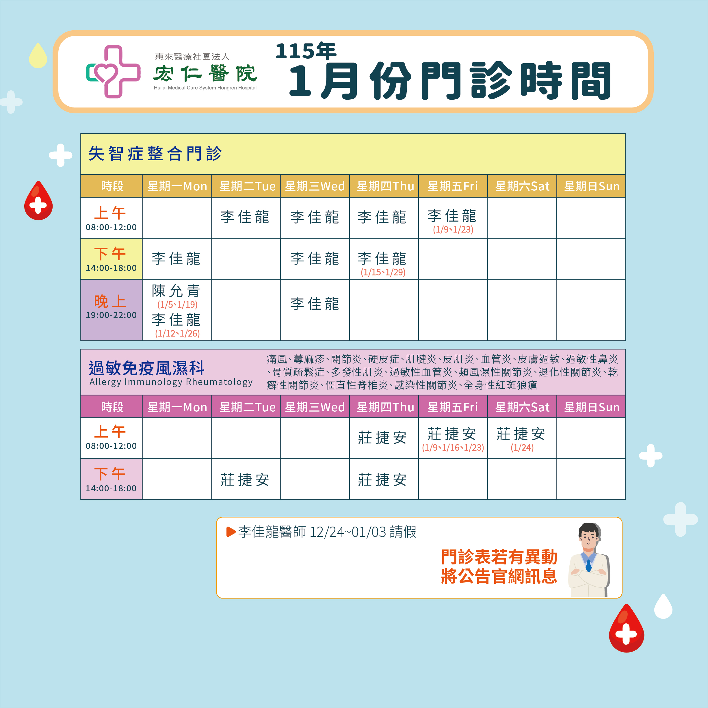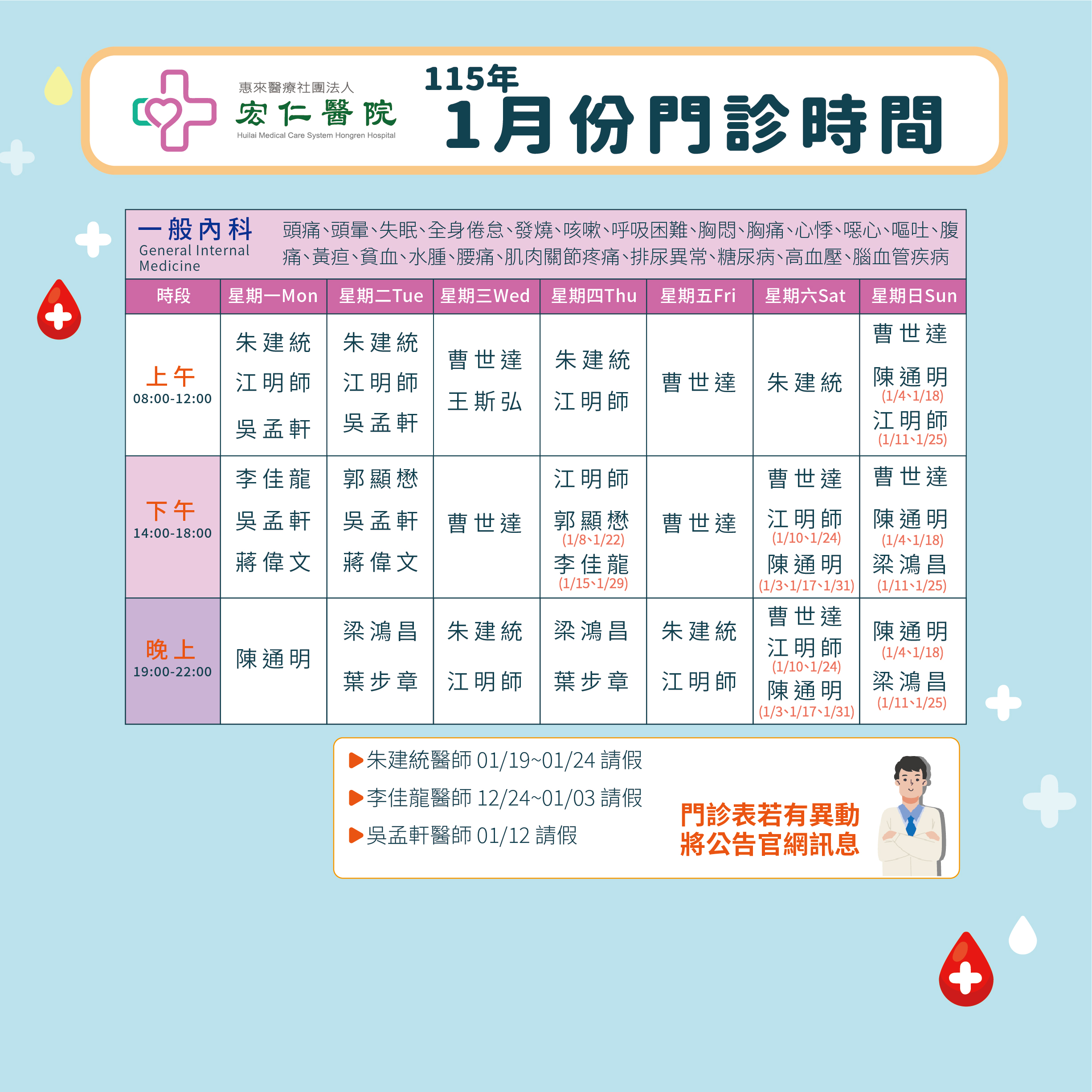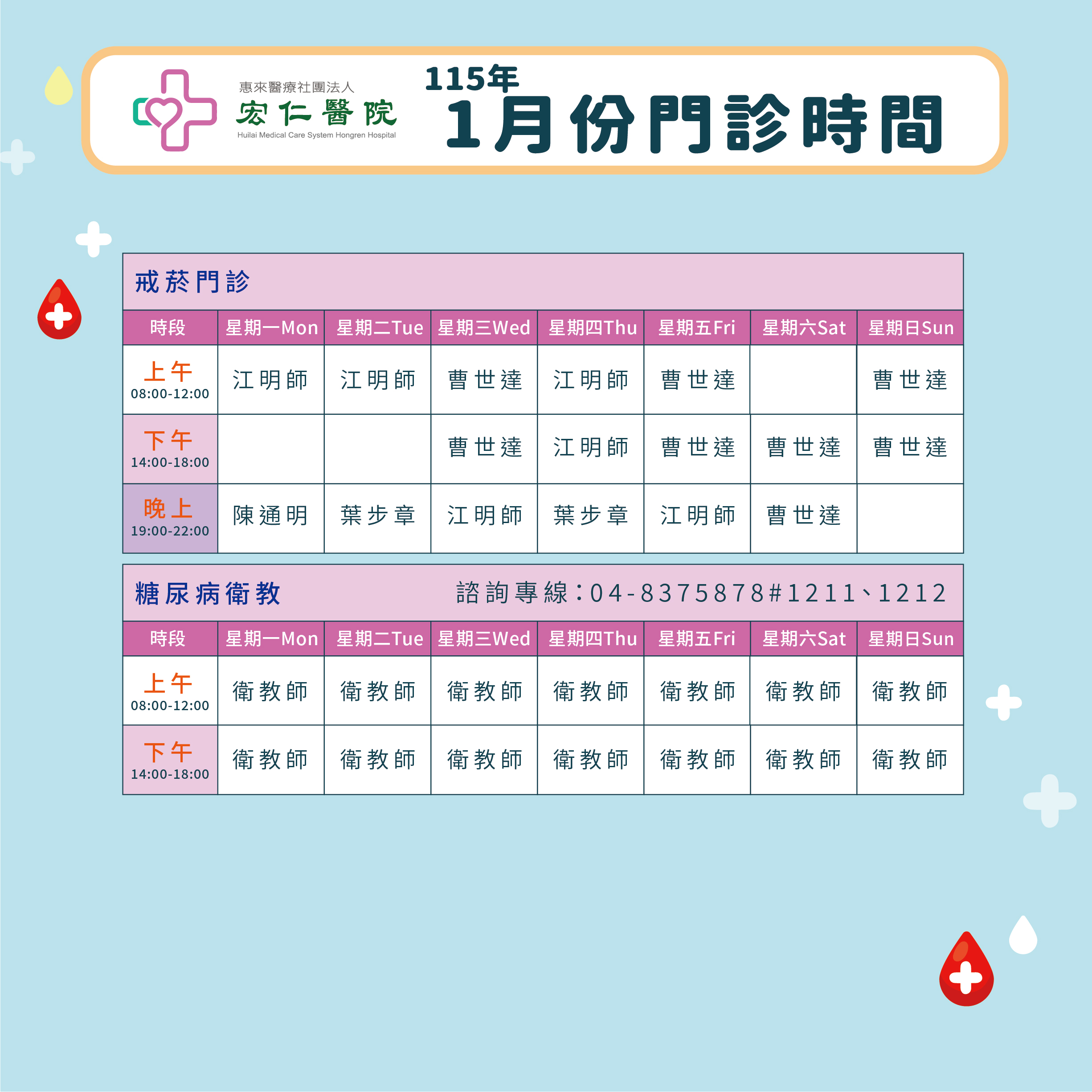 2026年1月門診表