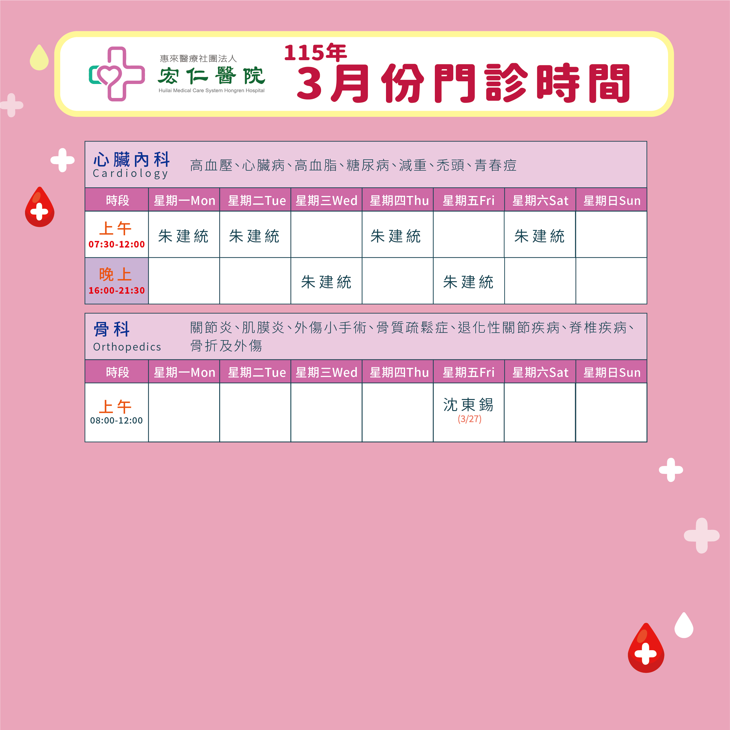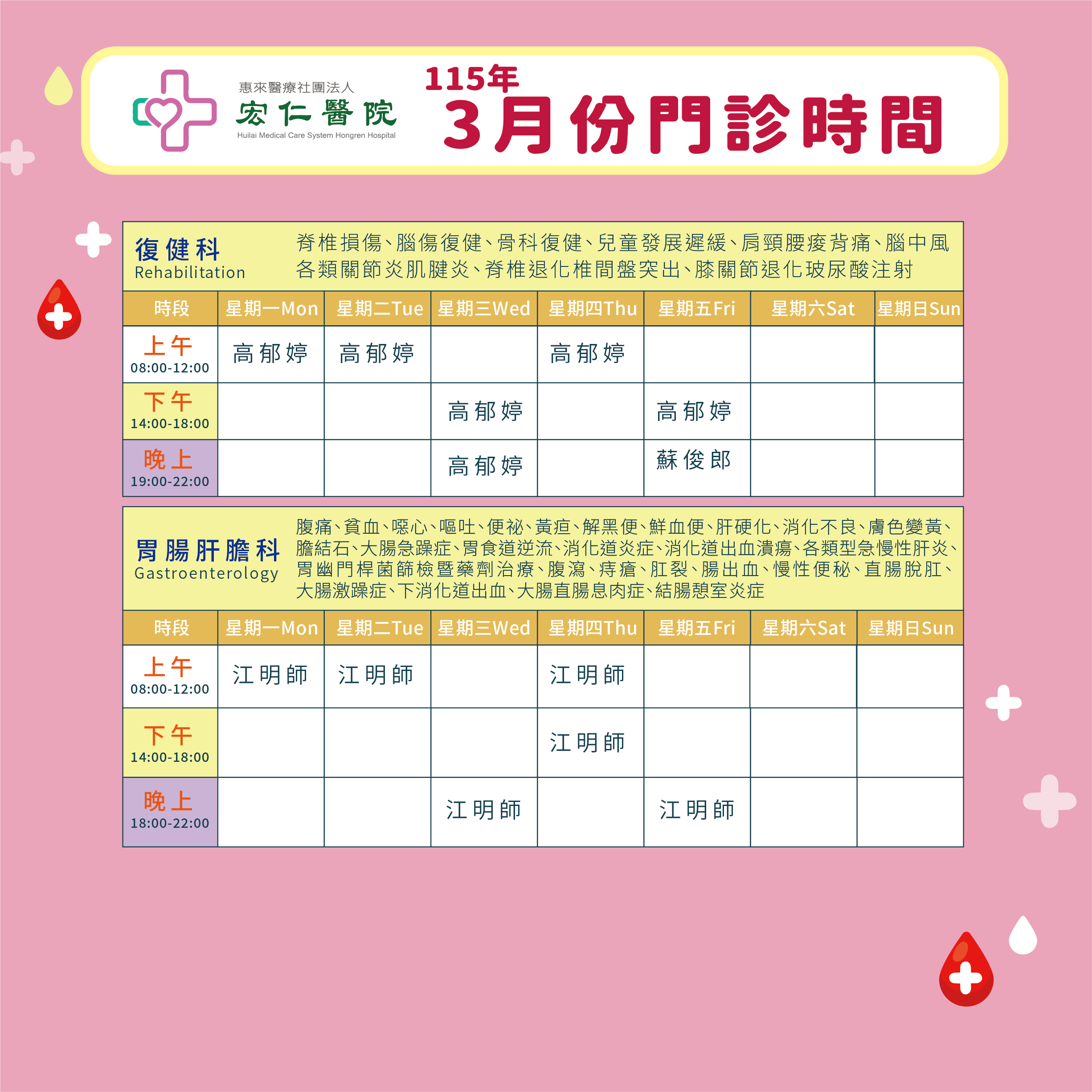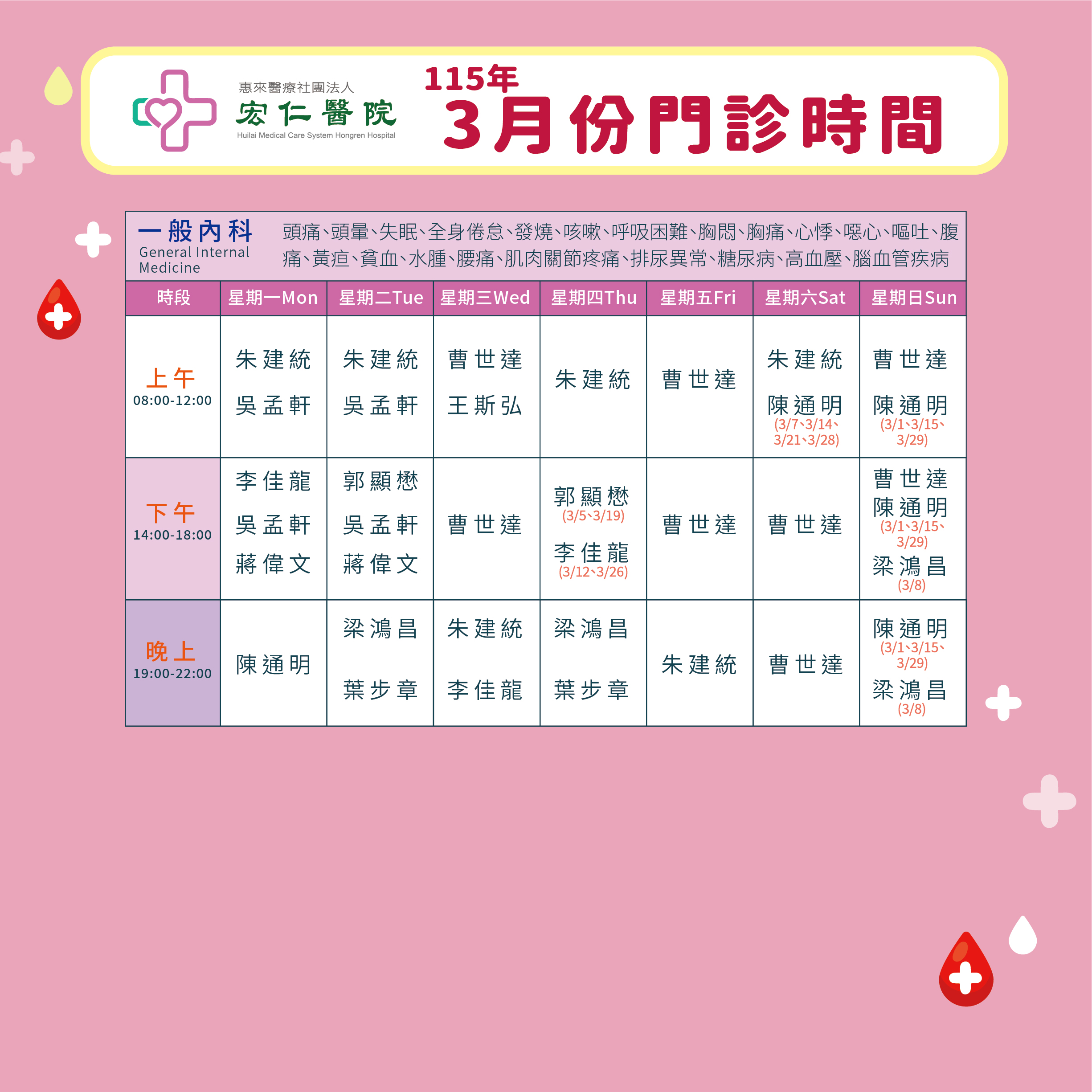 2026年3月門診表
